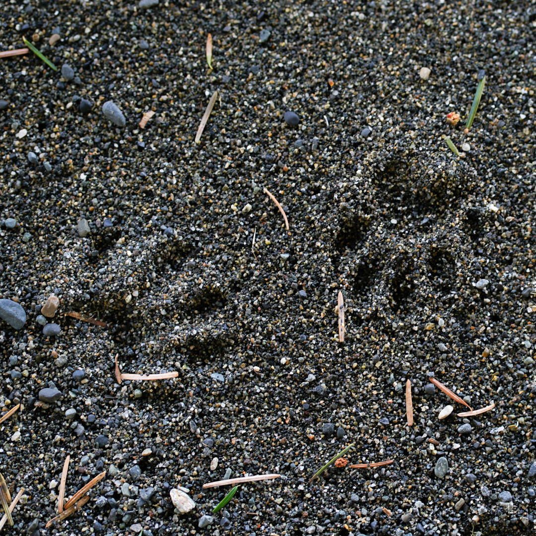 Sound and Sign allow me to read the goings on of a place. I see where a black bear has marked a tree with their claws, and then the scat and prints leading to and from it in the sand. I hear the the mixed flock of Golden-crowned kinglets and Chestnut-backed chickadees that forage together in the canopy far out of view. I note the passage of a large bird that only visits Vancouver Island during migration by finding a single print preserved below the surface of a coastal pine bog.