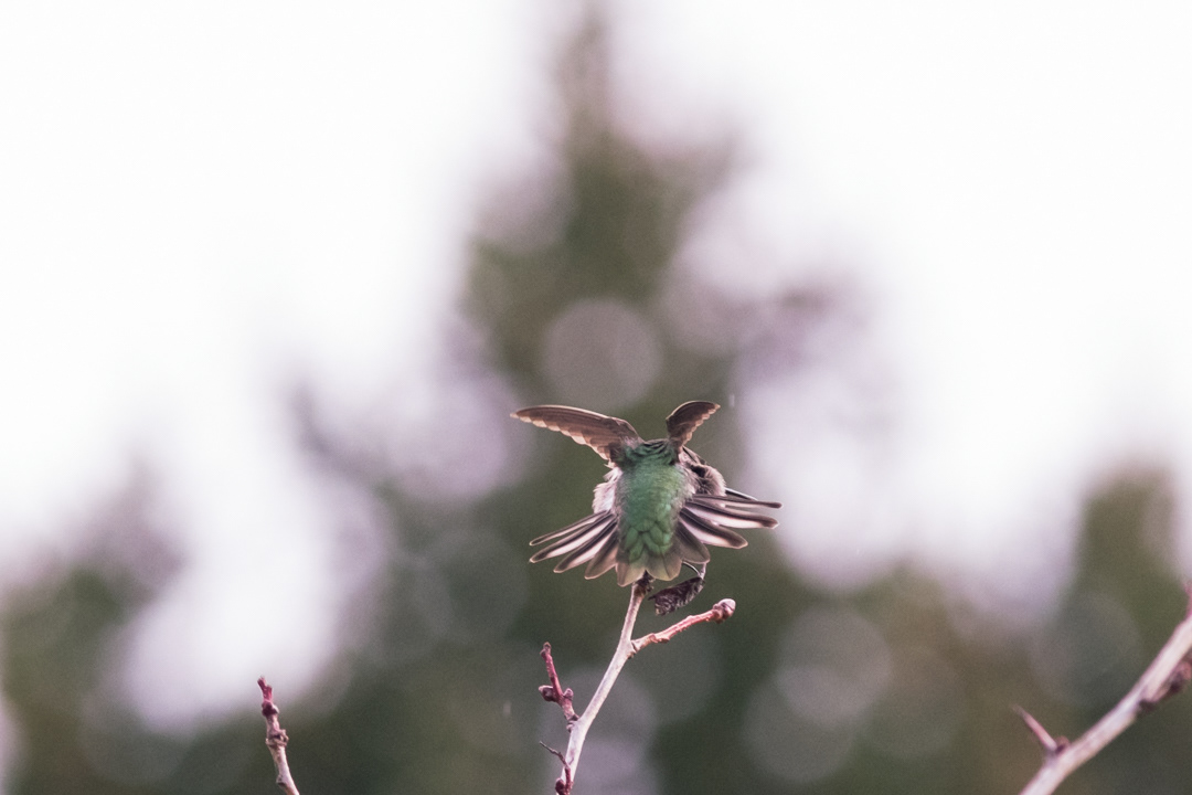 Walking through a meadow, I hear a short, loud, high frequency, whistling "peeeIP!" I know there is a male Anna's humming bird nearby. He is displaying to a potential mate or warning others to stay away from his territory.